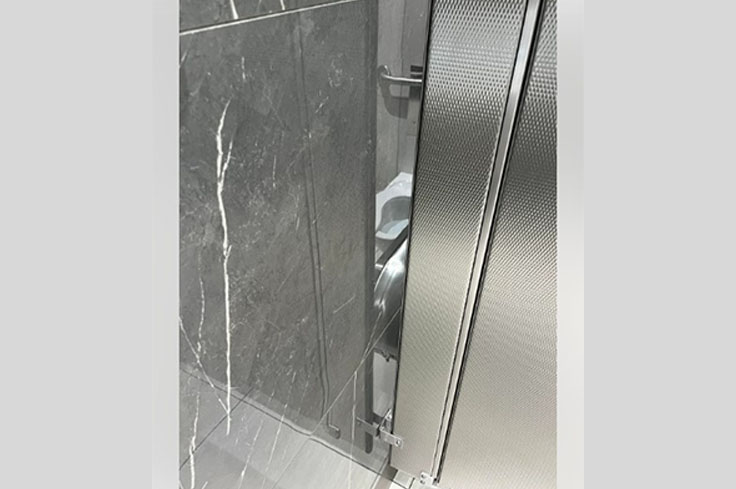 Nothing says “public restroom privacy” like walls that reflect your every move. These shiny surfaces ensure you can admire yourself from every angle while doing your business. It’s the ultimate vanity experience, brought to you by a designer with a sense of humor. This restroom setup is perfect for those who never miss an opportunity to check their reflection, even in the most private moments.