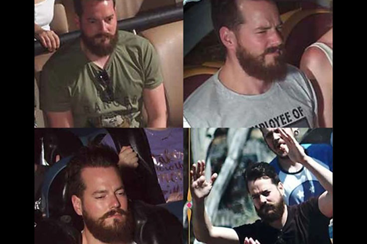 Meet Mr. Cool, the man who remains unfazed no matter how wild the ride gets. In a series of photos, his expression hardly changes, showcasing a mix of nonchalance and mild annoyance. Whether he’s gripping the safety bar or raising his hands, his calm demeanor contrasts sharply with the thrill of the roller coaster.
