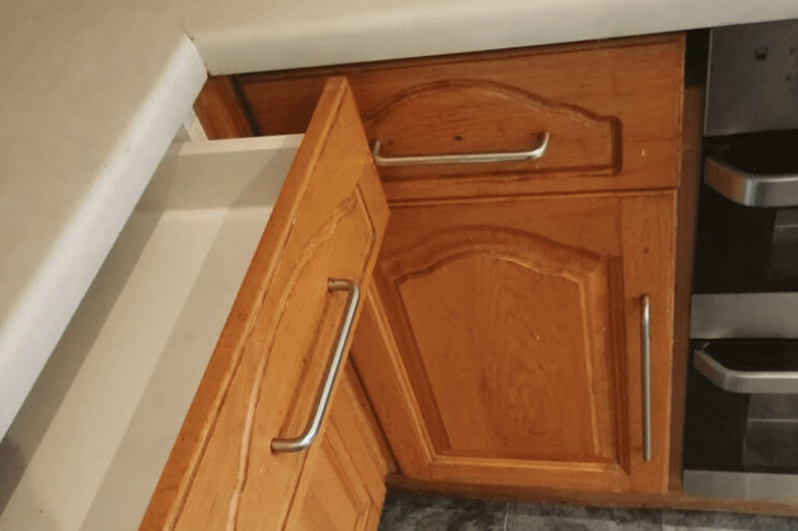 Practical functionality is crucial in home design, with every element needing to synchronize for seamless operation. The homeowners of this kitchen likely rue their choice to forgo a professional contractor. Deciding to tackle the design and construction themselves, they’ve ended up with a space that’s far from the usable area they envisioned.