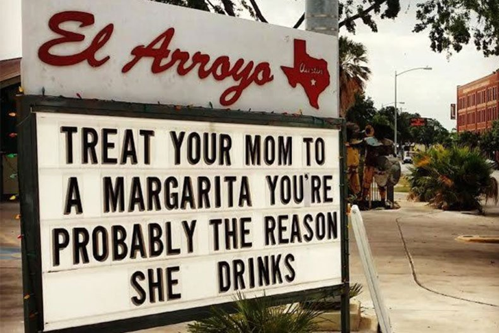 Mexican restaurants really seem to understand their clientele. A sign from El Arroyo in Texas proclaims: “Treat your mom to a margarita. You’re probably the reason she drinks.” It’s a compelling argument, particularly if, like many, you were mainly visiting for the beverages. While the food is likely delicious, the allure of indulging in a margarita or two is hard to resist.