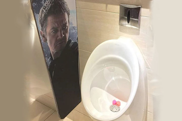 Not only does this setup provide a good laugh, but it also ensures you have an unusual bathroom story to share with friends. It’s the perfect combination of comic relief and awkwardness. Next time you’re in this restroom, you might find yourself trying to impress the hero, even if it’s just with your aim.