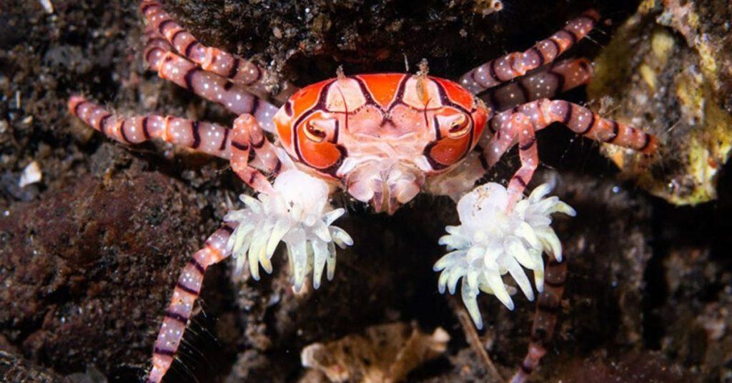 Animal Overview:The boxer crab gets its name from its habit of carrying small sea anemones in its claws, resembling a boxer with gloves. The crab uses the anemones as both a defense mechanism and a food source.