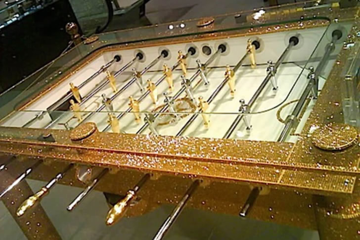 Dubai’s penchant for opulence extends beyond vehicles and pets to even include gaming equipment, showcasing that residents with the financial means do not hesitate to acquire extravagant items. The Lux Gold Foosball table exemplifies such luxury, captivating onlookers with its elegant design. Adorned with gold finish, diamond inlays, and Swarovski crystals, this table is undoubtedly suited for the most regal settings.