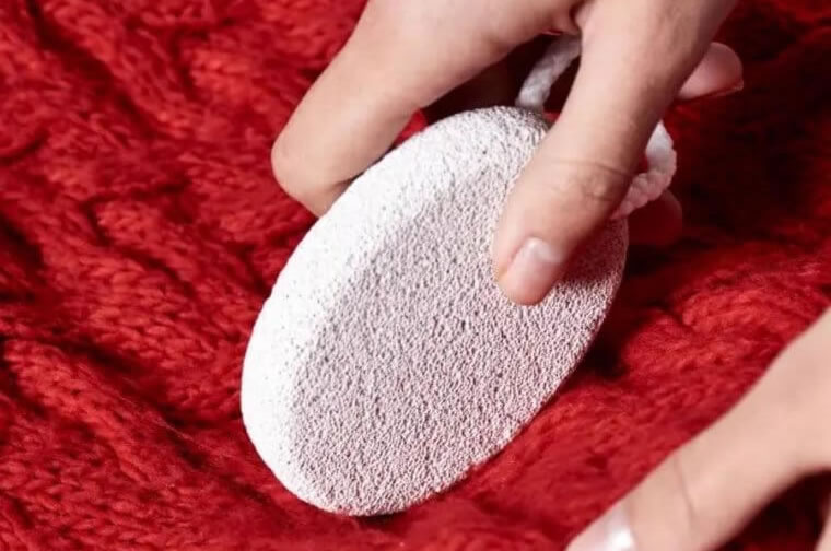 If the thought doesn’t deter you, simply clean your pumice stone and ensure it’s dry before tackling your fuzzy clothing. Gently glide the stone over your sweater—or any other fuzzy item like pants, shirts, or jackets. The pumice stone will effectively lift and remove the fuzz, rejuvenating your garments to their once smooth condition.