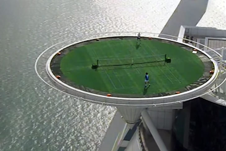 Situated over a thousand feet above ground on the Burj al Arab hotel, Dubai boasts the world’s highest rooftop tennis court. In a promotional event for the Dubai Duty-Free Open in 2005, tennis legends Roger Federer and Andre Agassi were invited for a friendly match on this elevated court.