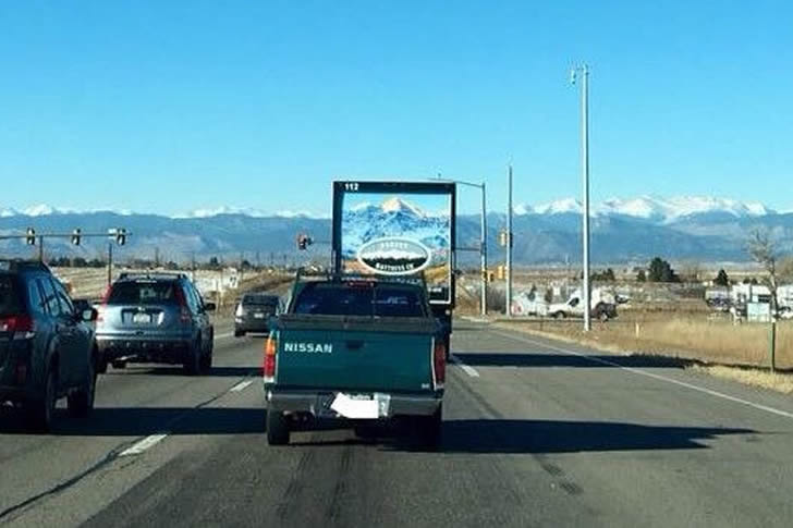 Sometimes, being in the right place at the right time can lead to surprising visual treats. This was the case when the image of the Rocky Mountains on a truck perfectly matched the actual mountains in the background. The alignment was so precise that the snow-capped parts of the mountains seemed to extend seamlessly from the truck.